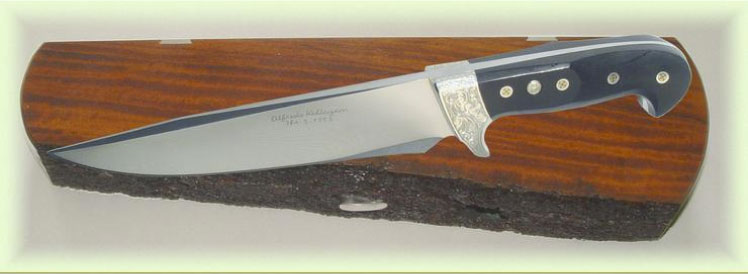 La misma hoja robusta del modelo 38 con otras connotaciones: guarda maciza de Plata .950 grabada por Carlos Chiara.
