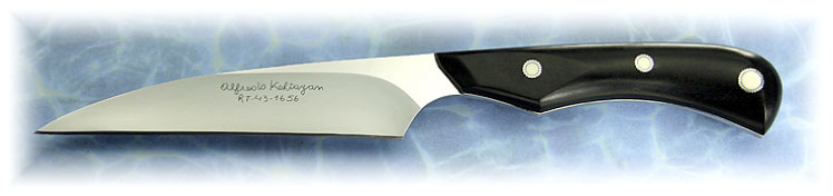 Hoja de 3 x 20 x 120 mm de acero KRUPP. Cachas de Ebano con tarugos de marfil y plata.